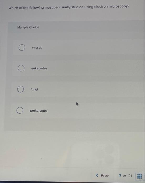 There are two major types of electron microscopy. Please wait for the page to fully load before you begin to answer the questions. All living organisms that are too small to be seen with the naked eye are studied in microbiology.