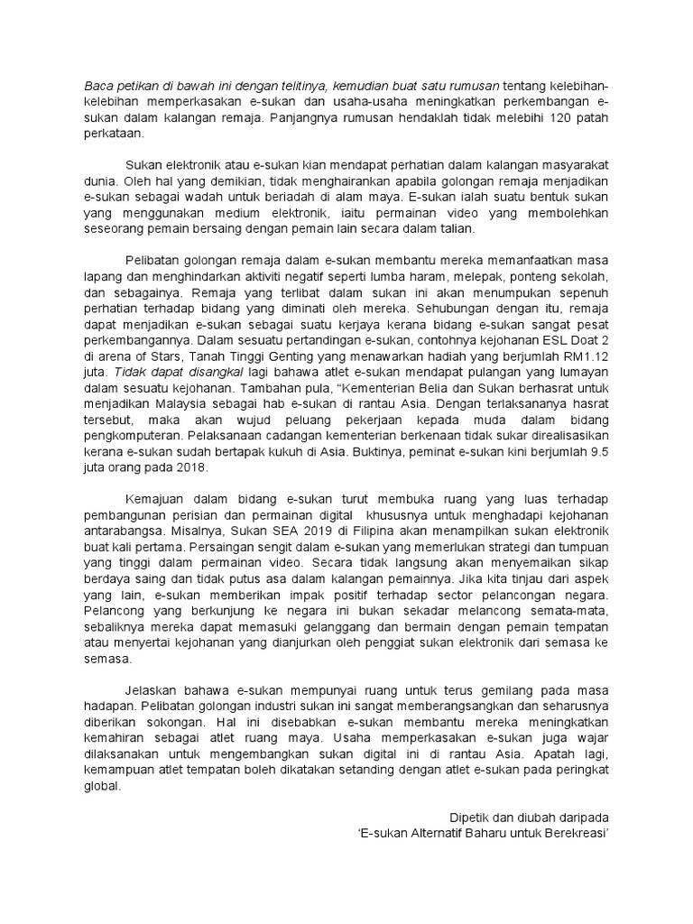 Contoh Karangan E-sukan